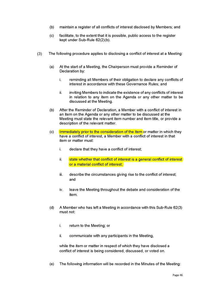 Please note in the above how they interpret WHEN such a declaration is to be made. Secondly we assume that the item was also discussed at the pre-council records of assembly. We can only assume that no declaration was made then and certainly not at the start of the ensuing council meeting. If there is in fact a genuine ‘conflict of interest’ (which we doubt) then council is in contravention of its own governance requirements! What irks us the most is that unless corrected, these minutes provide the illusion that everything was carried out properly and in accordance with the rules. It wasn’t and thus an accurate set of minutes is vital to preserve the historical record for the future.