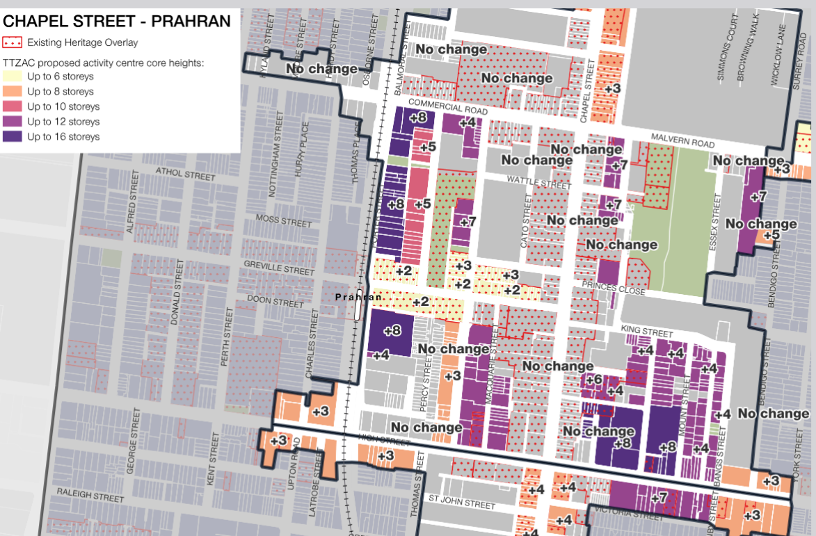 Stonnington’s adopted Housing Strategy has considered building heights within the catchments, and provides a context-responsive approach, allowing for realistic levels of growth based on existing constraints and opportunities.