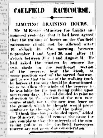 Reserve, adopted at its March 19 meeting, stated “Training of horses on a commercial basis is not one of the purposes for which the Crown Land is reserved. Providing a “public recreation ground and public park” takes precedence over the training of horses. To the extent that training prejudices the provision of public ground and public park, training should be phased out.”