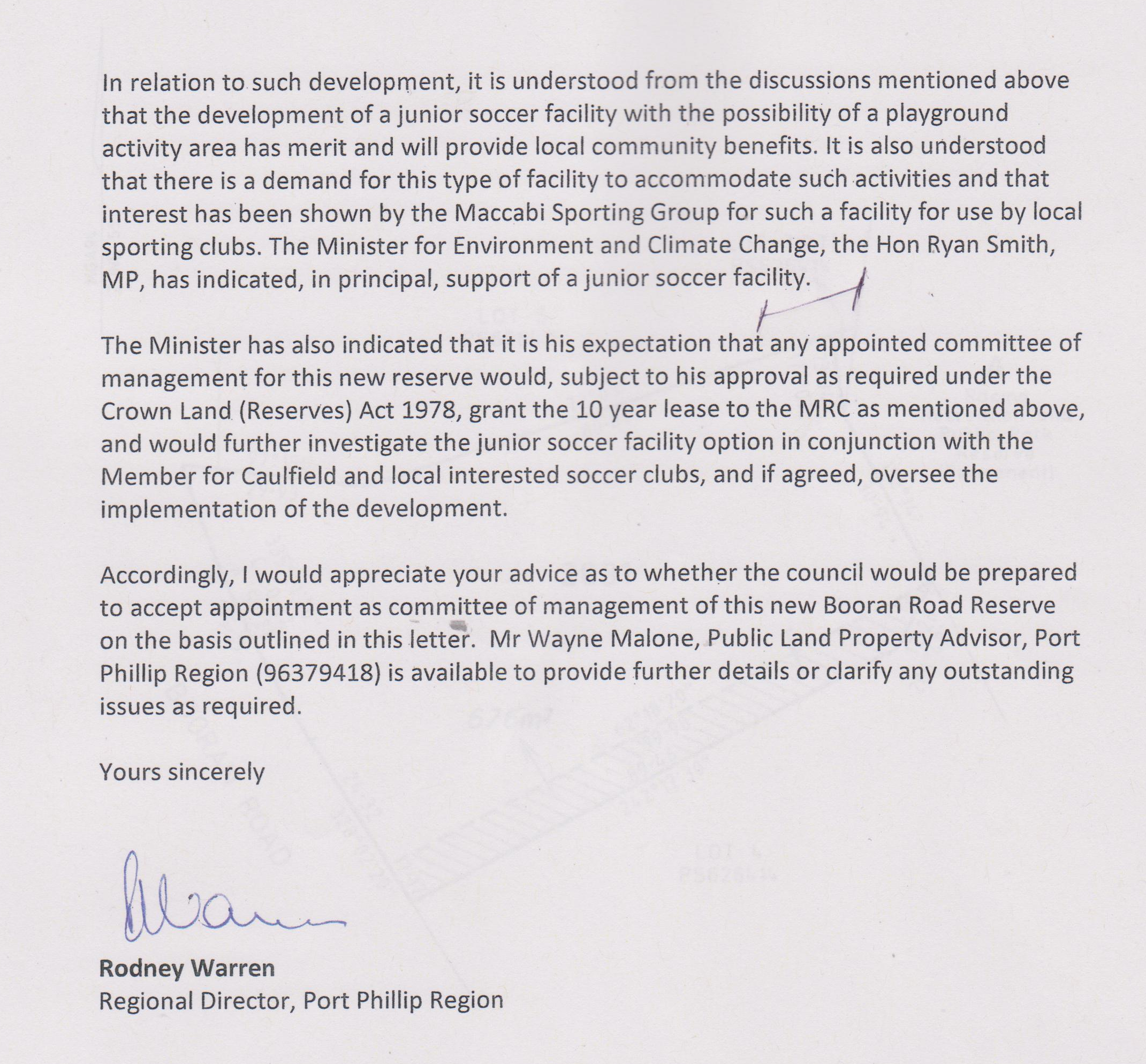MAGEE: said that the document sets out council’s ‘reasonable expectations’ on the use of Crown Land. Went over the history and that the reserve was set aside for ‘racing, recreation’ and park. Stated that racing is ‘well and truly catered for’ and that recreation and park isn’t.