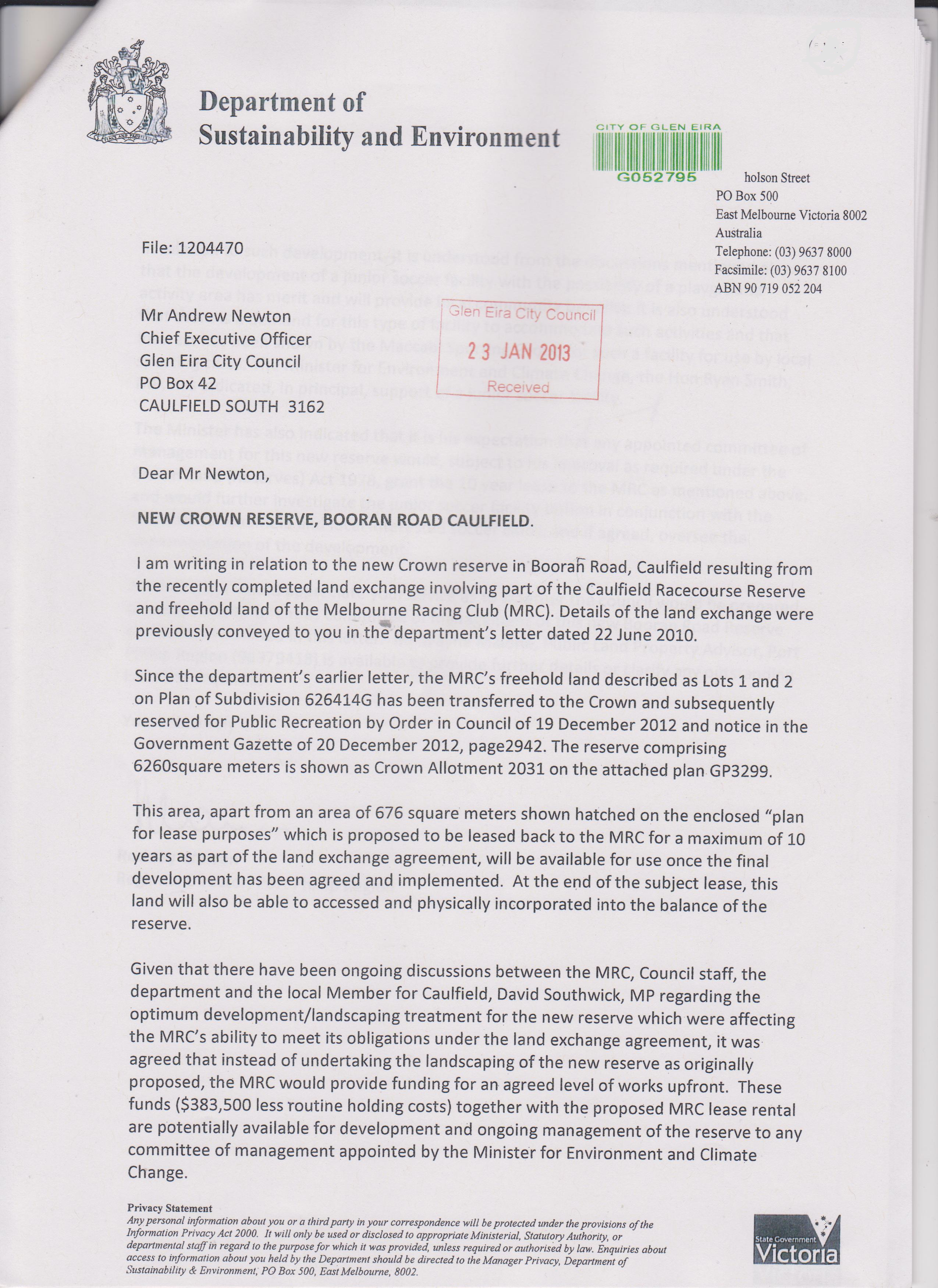 Talked about the land swap and how the role of the trustees was to protect the land and they decided that it was no longer needed and the MRC bought it and last year the Minister ‘announced a 1 billion dollar development on that land’ and that the developer is the MRC. They are now ‘one of the largest commercial developers in Victoria’. Also that the Minister ‘decided that I’m not worthy of being a trustee anymore’ and that it could have ‘something to do with the letter’ he wrote to Baillieu. The MRC is classified as ‘non-profit’ but here they are as a major developer. They own 11 hotels, 3 racecourses, tabarets and are ‘into gambling’….’all we want is some land in the centre of the racecourse which is ours’. Said that at the trustee meetings he argued against the landswap because the trustees ‘were getting nothing’ because ‘the land never came back to the trust. It belongs to the DSE’. Said their, the trustee’s land is now 8,500 metres smaller and the trustees themselves did this. They did this because there isn’t any documented policy. Wanted to know how the trustees ‘could give this land to the MRC….not knowing that there is conflict of interest’ and how could the 6 MRC members buy the land and then ‘announce a development of 1 billion’ without seeing this conflict of interest. This happened because ‘there are no rules’. The result is that residents are locked out and that whenever something is on they need the land for parking so people are again losing out.