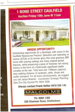 In a way it’s quite inappropriate …because there are so many issues of state significance involved in this particular area…first off it’s a transport interchange, with various additional lines which will require more land; secondly, it’s got the racecourse…..there is no doubt that the State Government and the major activities part of the state government consider that the Caulfield racecourse and the Caulfield cup to be a substantial leg of Melbourne’s party town atmosphere which houses our tourist industry…so the State government would have a very strong interest in maintaining Caulfield as a racecourse……(people) know about Caulfield on the other side of the world (by virtue of the Melbourne and then the Caulfield Cup)…..it’s also historic…and hence part of Melbourne’s fabric….it also has a major use as an exhibition centre….part of major events calendar there…