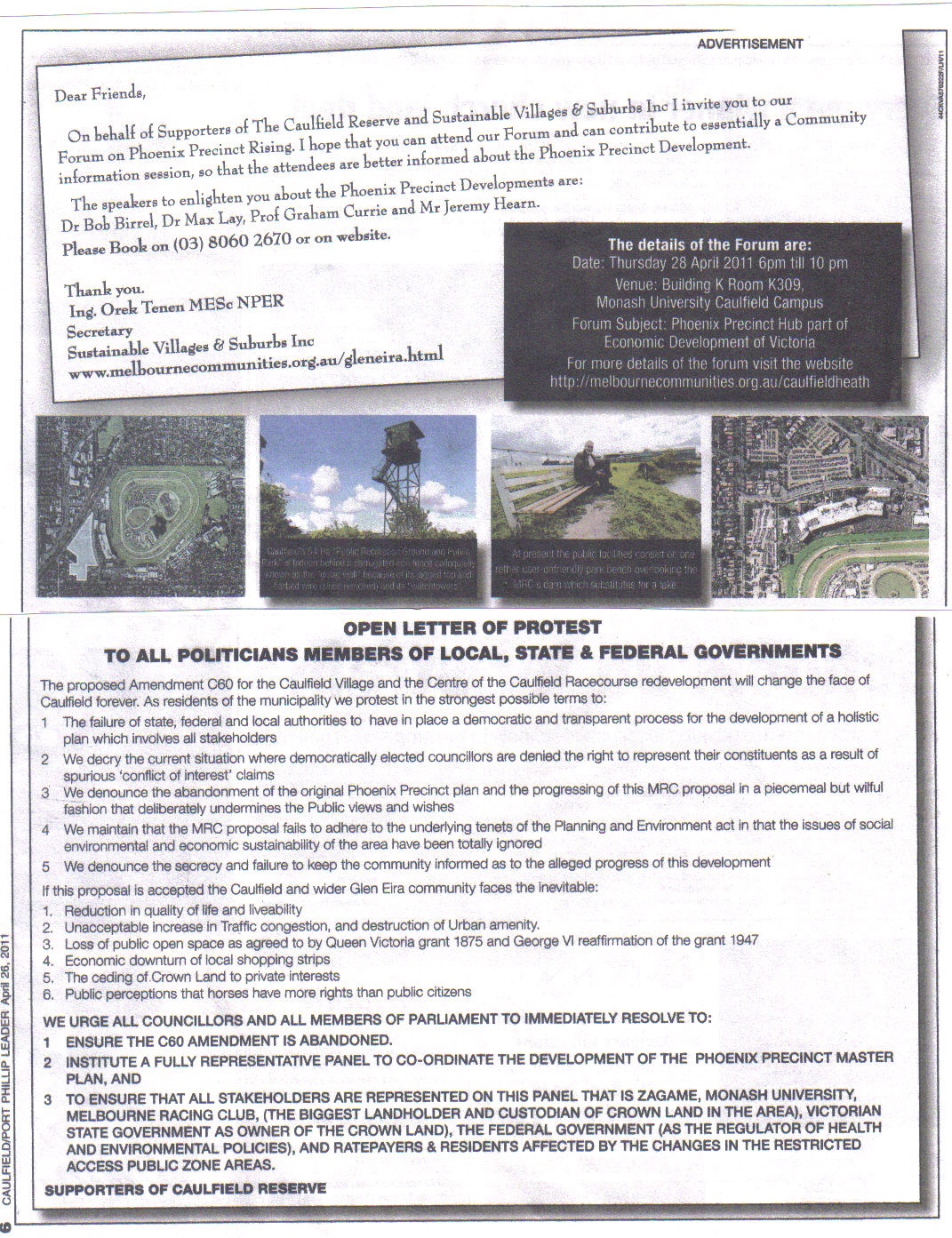 PENHALLURIACK: Began by reiterating the history of the racecourse and stating that the public has been ‘excluded’ from the grant by Queen Victoria. ‘Tonight I stand ashamed to be a councillor of Glen Eira because the negotiators’…..’did a terrible job’. ‘almost everything they achieved was achieved by a letter from the MRC to Council in september last year….that was held secretive from council, all councillors I presume until it was published in the agenda for the Special Council Meeting on the 13th December last year’....’What has been achieved in my opinion is pathetic.‘ ‘Nobody will go into a public park with a big fence around it’ Most people are at work at 9.30 and instead of allowing people to enjoy a barbecue in summer they have to be out by sunset…’what’s wrong with having lighting in this particular park?’….’It will not work as a park’…’and the access is shared with horses. Sure the horses go, but they leave their shit behind and when you go into the park you can smell it’. Outlined his solutions for walking horses across the area…’It’s a deliberate move by the MRC to exclude the public because for the last 8 or ten years the public is suddenly gleaning an understanding that it’s their park’. It is not ‘the exclusive domain of the Melbourne Racing Club as they would like you to believe it is’….The MRC is a non profit organisation but ‘I’ve never known a more avaricious organisation in my life’. Spoke about the profits from pokies and compared Zagame’s payment of 8.3% in tax because it owns the land, compared to the MRC which can spend this ‘tax’ on watering the lawns in the racecourse and paying the labour. ‘We should have that money in council’. ‘You heard cr Tang earlier talking about this massive increase in rates that you’re going to be facing,…it should not be happening. That $3 million dollars…should be coming back to council’. ‘What we’ve got with this dreadful negotiation is a piece of nonsense….I can tell you that….in 24 months time the MRC will go to the government and say ‘Look we’ve wasted a million dollars on this park and nobody uses it’…..Cr. Lipshutz….has ‘caved in’ …or whoever was dealing with the MRC and it may well have been our CEO becuase the CEO and the planning department had a number of meetings with the MRC ….which we’re not informed about as councillors and we should be informed about it’. reiterated that this deal came from the MRC last September and ‘we didn’t know about it….we are heading for a disaster, we have missed a golden opportunity….If the motion is lost I’m going to move that there be further’ negotiations with the MRC’. doesn’t believe that it should be ‘discussed here’. ‘The deal we’ve got is a waste of the paper it’s written on’. ‘Five years to pull down the fence on Queen’s Avenue. I can do it in 5 minutes’!