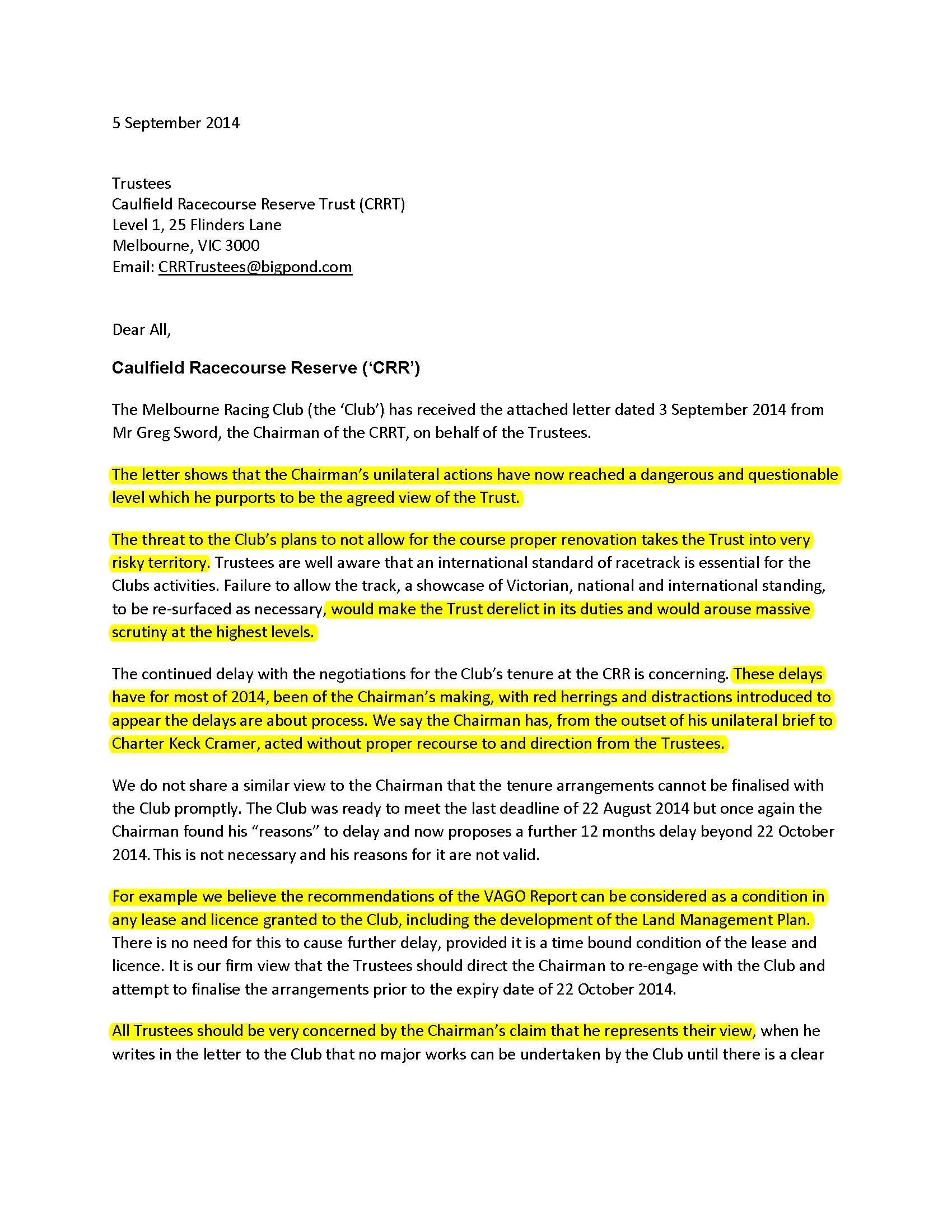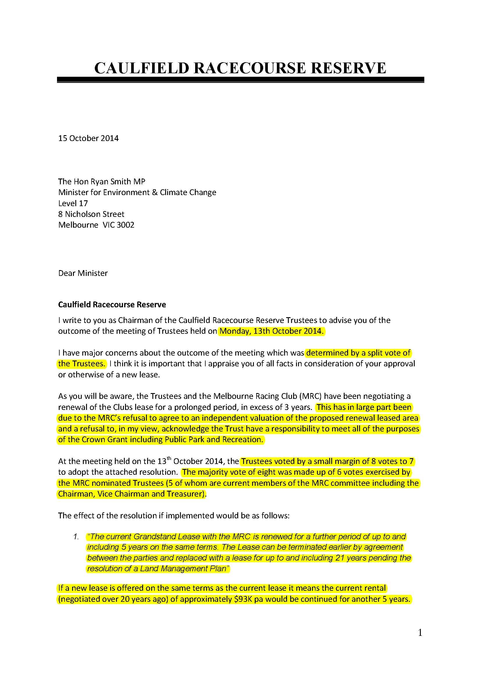 The Auditor General has released his long awaited report on the governance of the Trustees and the oversight management of the Department of Primary Industry on the crown land that constitutes the Caulfield Racecourse Reserve. We congratulate the Auditor General’s office for the report and for affirming what can only be described as a combination of blatant incompetence and vested interests that have been allowed to reign for far too long and to the detriment of the local community. No public office escapes unscathed. We will comment in greater detail once we’ve had time to fully digest the report. We’ve uploaded the full report HERE.