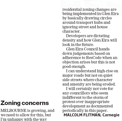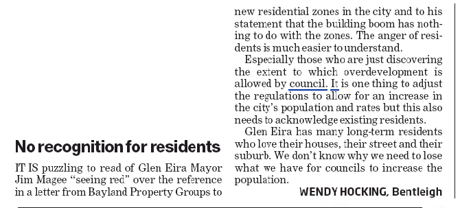 We also suggest that when reading the following, readers keep in mind what occurred in Glen Eira – that is: secrecy, no consultation, and deliberate obfuscation in response to various public questions.