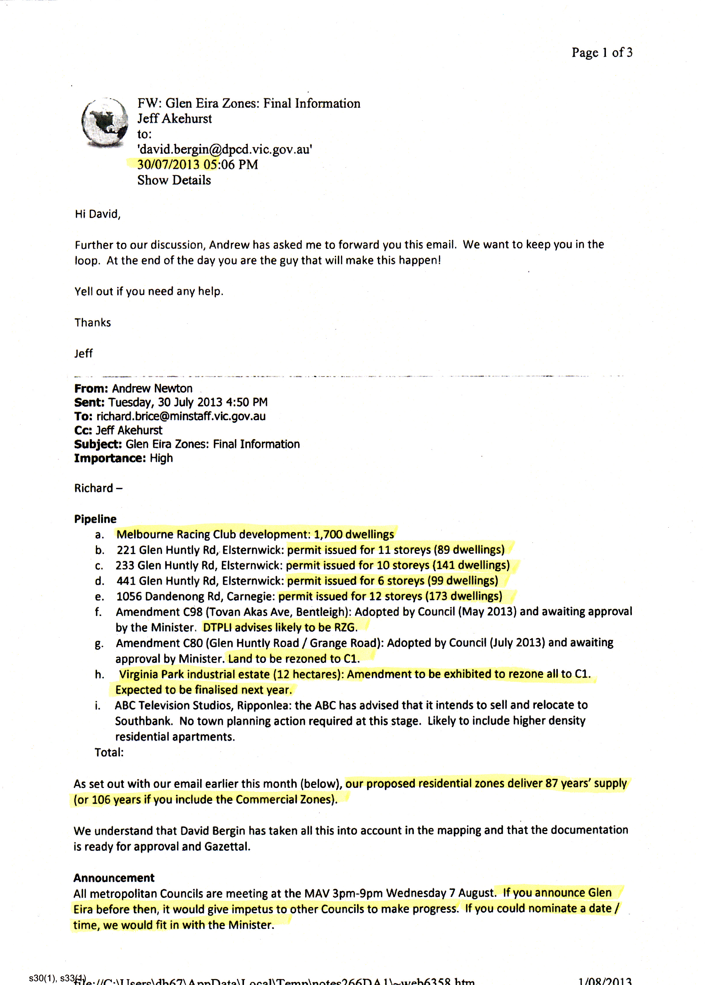 LOBO: said there is overshadowing. Residents also said that privacy, devaluation of property is no concern to the ‘three tiers of government’. ResCode is ‘simply a joke’ in terms of parking. Said that Guy’s powers were ‘extraordinary’.