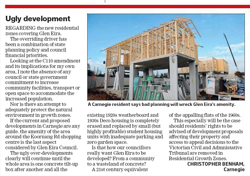 - Glen Eira does not have any policy whatsoever that can assure residents that trees are not the victims of greedy developers or poor maintenance.