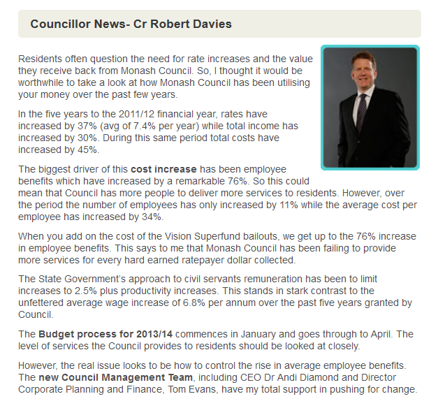 We’re getting mightily sick of revealing how often this council is out of step with the majority of its neighbours. This is not the first time that submissions to various committees or government have not been ratified by council resolution first off (as done in other municipalities) much less made public. Residents have no idea as to how this council votes at MAV conferences; what positions will be taken, or much about anything. We even wonder if councillors get a look in, or have a say on anything. Yet they do nothing! They allow residents to be treated like mushrooms and the disease of inaccurate reporting and secrecy continues unabated.