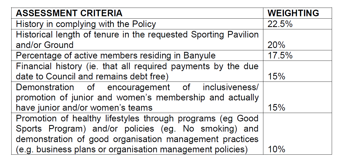 By way of contrast, here is part of the Banyule Sporting Allocation policy where the criteria used to decide who gets what is public and easily accessible –