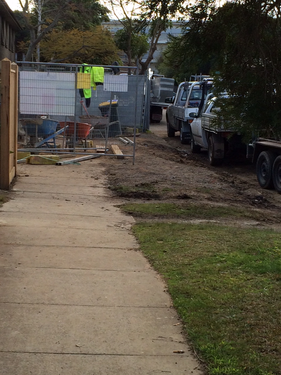 We’ve received the following email and series of photographs highlighting (once again) the chaos that residents have to put up with. Why this goes on and on and developers allowed to own our streets is incomprehensible. Even if fined, we’re told that either the fine is ignored, or it’s so miniscule that it is a drop in the ocean for most contractors working on multi-million dollar projects. It is our understanding however, that councils have the legal right to set their own penalties. A $200, or even $300 dollar fine is negligible. It is time that this council got off its backside and starting properly policing, fining and prosecuting each and every single developer that does not give a damn about those living next to his mess.