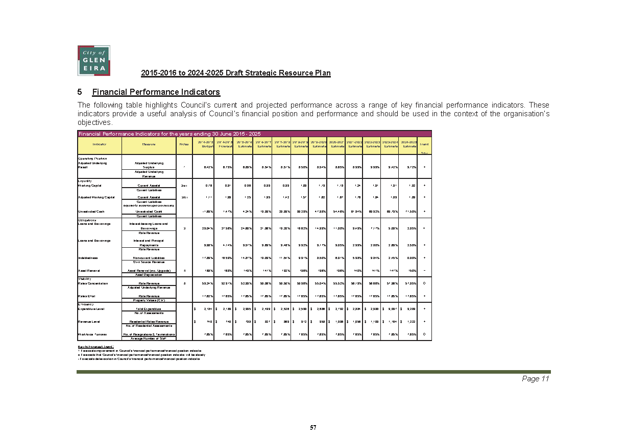 To ensure consistency with the Local Government Performance Reporting calculations, officers have recalculated the financial indicators and have reproduced these (refer attached). They will be updated in Council’s Strategic Resource Plan.