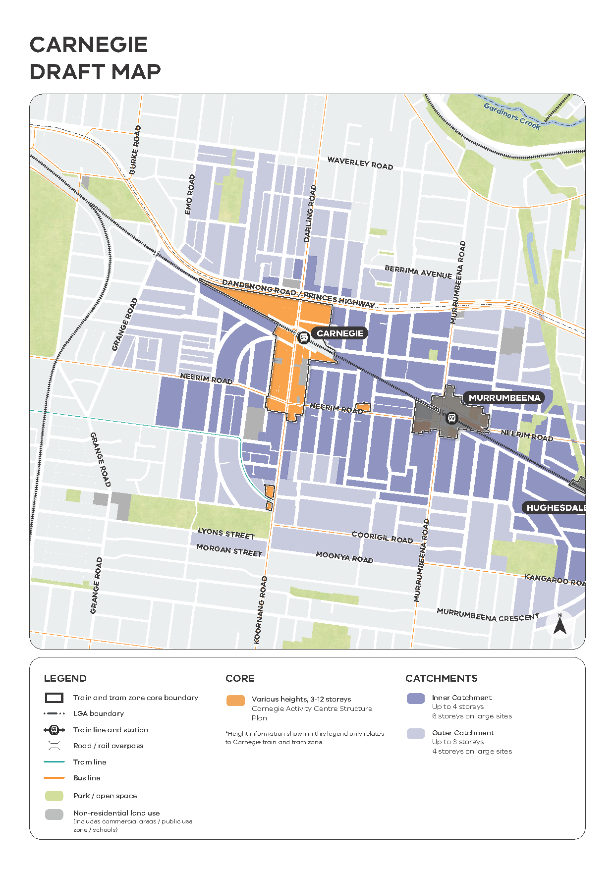 In the core commercial area of Carnegie, the proposed changes are positive for Council and the community, with draft maps proposing to retain the building heights adopted under the Carnegie Structure Plan (proposed Planning Scheme Amendment C237). This is pleasing to see and the result of strong advocacy by Council over 2024 and 2025.